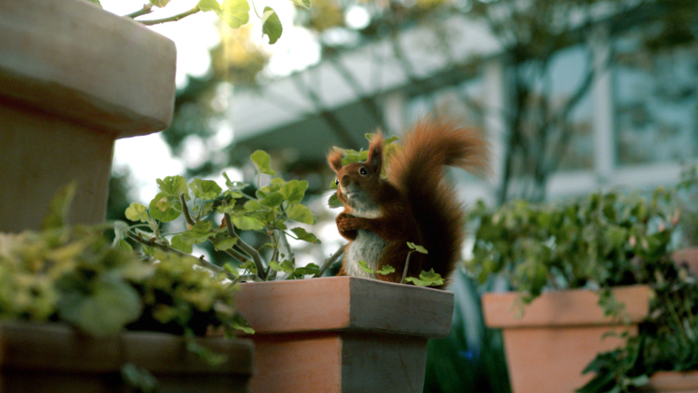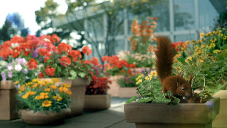 In order to make the realistic CG squirrel perform in a live action environment, I blocked out the timings and actions of the animal during pre-vis. After analyzing reams of squirrel footage to understand how these creatures moved, I key framed the squirrel into life. Various simulations were created to add realistic fur and muscle movements to the animation by the 3D team at boutiq. Shot on location we added lots of 3D plant extensions during post production to simulate seamless interaction between the squirrel and the environment. Our goal was to make a humorous spot, and make the film look as believable as possible, since the squirrel and the "exploding" flowers are entirely computer generated.