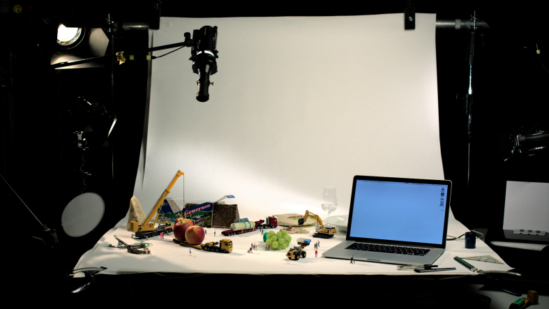 After designing the script and storyboard we photographed the products and props in a studio. We matched the camera in 3D and then animated the characters in Maya and comped everything together in Nuke and After Effects.