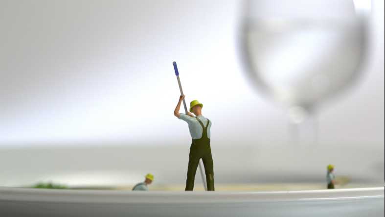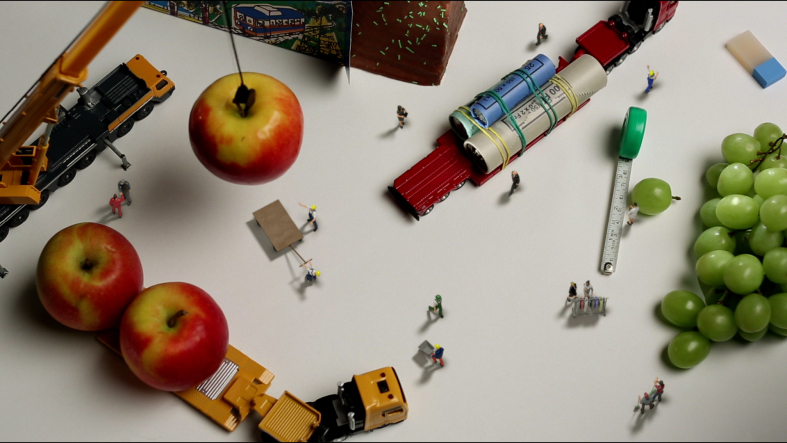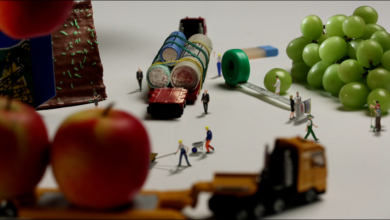 The headquaters of Migros Group made the decision to introduce an official code of conduct for all it's employees and partners. Because not everyone in such a big corporation enjoyes reading legal documents, we came up with an idea to entertain them while reading the matter to them. The creative team at MGB was inspired by the artist Péter Csákvári, aka Tiny Wasteland. They asked me to create a story with tiny people and products made by Migros Group.